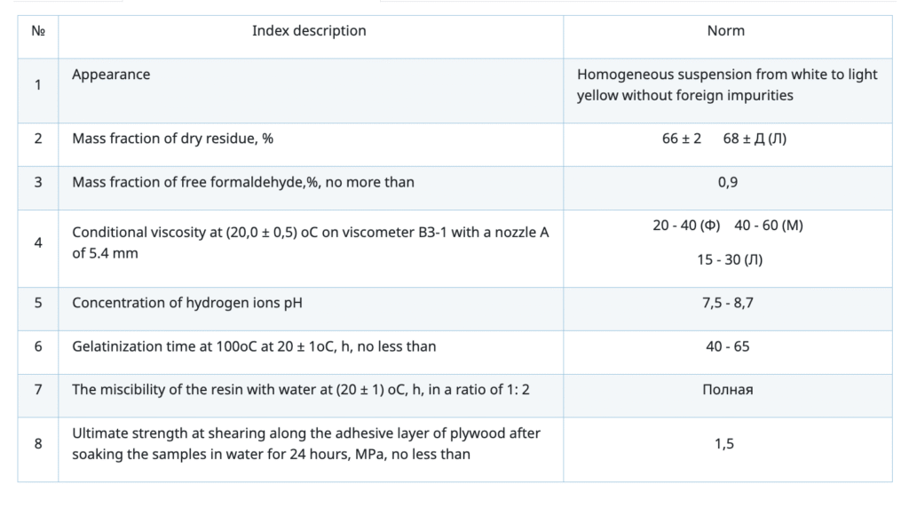 Safety requirements: The product is a non-flammable, non-explosive aqueous suspension. The degree of exposure to the human body is due to the presence in it of free formaldehyde and refers to the 2-class hazard in accordance with GOST 12.1.007.